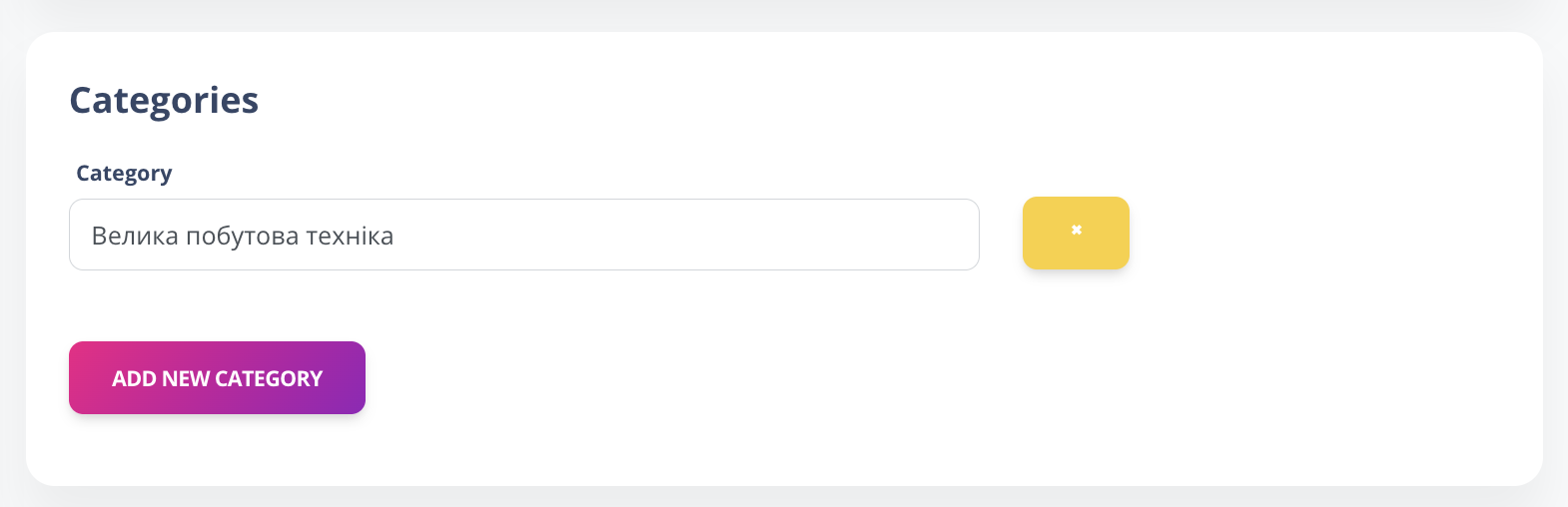 Щоб видалити категорію — натисніть на жовту кнопку з хрестиком поруч із її назвою.
